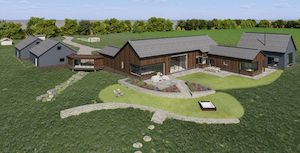 • Home #9 – This “Luxury Barn Build” is 4,000 square feet of efficient, quiet-luxury living. Infused with nature and expansive views, the space is highly customized to fit every part of our client’s unique lifestyle. Features include 4 bedrooms, 3 bathrooms, a glass-enclosed office, 14’ ceilings, loft space/ bonus room, and a two-sided fireplace. The property will be complemented with orchards, gardens and walkways.